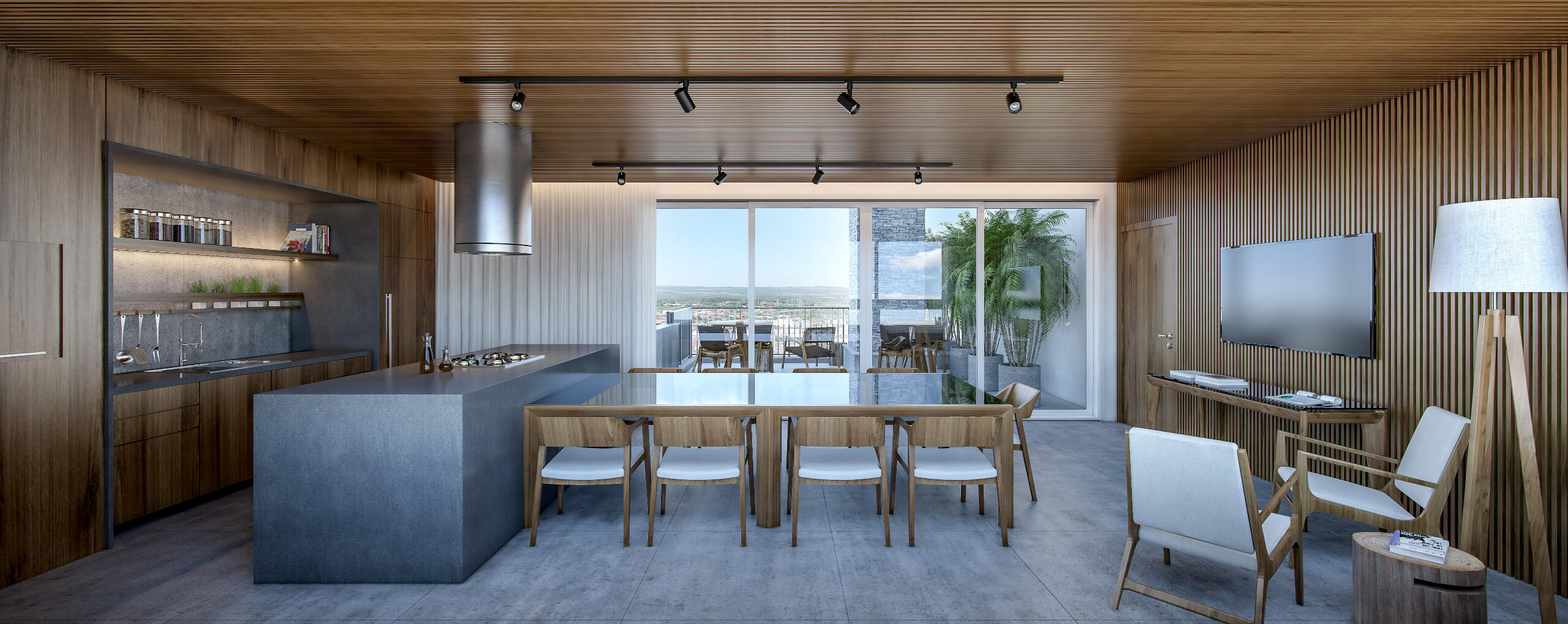 Salão de festas com churrasqueira: